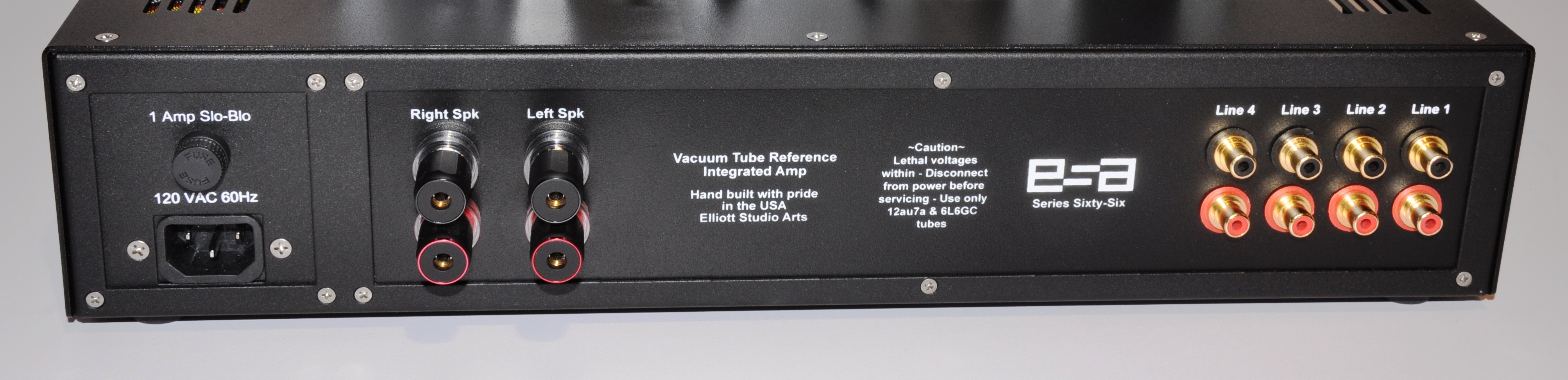 the 66-025 Integrated amp. Based on the powerful 66-100 but scaled down, this little amp delivers the goods; strong solid rythmic drive, transparency and true timber. Boasting very low distortion and flat response beyond the audible range, this is a low gain / high current design like the big brother 66-100 paired to a true preamp stage, not just an amp with a source selector and volume control. The features include four line-level inputs, balance, volume, mute & mono switches, and a bypassable passive tone contouring circuit optomized for minimal signal degradation (optional). Perfect for high-sensitivity speakers.